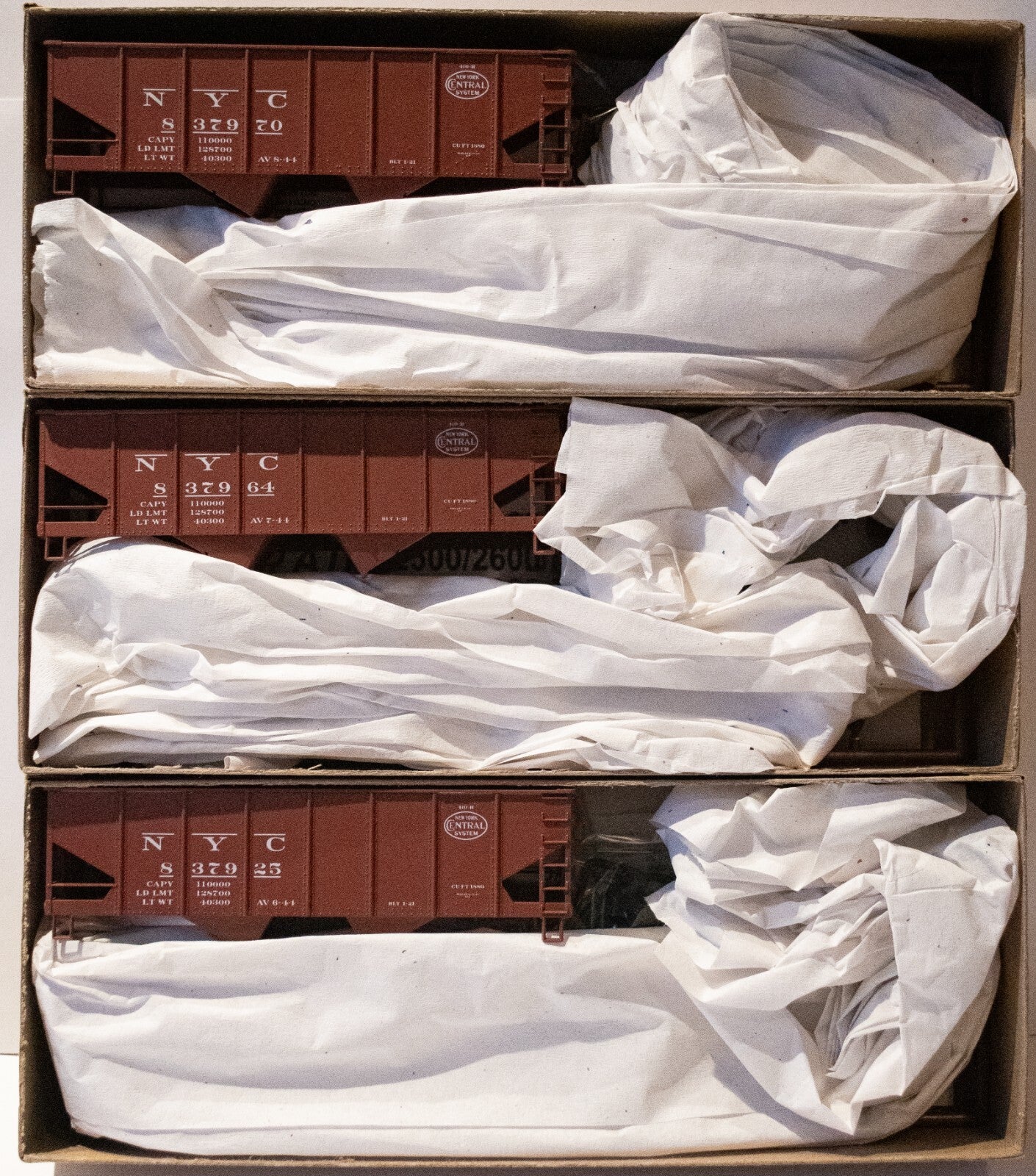 Accurail New in Box In Kit Form Assembly required HO Scale / 1:87 Scale USRA 2-Bay 55-Ton Open Hopper 3-Pack - Kit -- New York Central #837925, 837964, 837970 (Boxcar Red, System Logo)