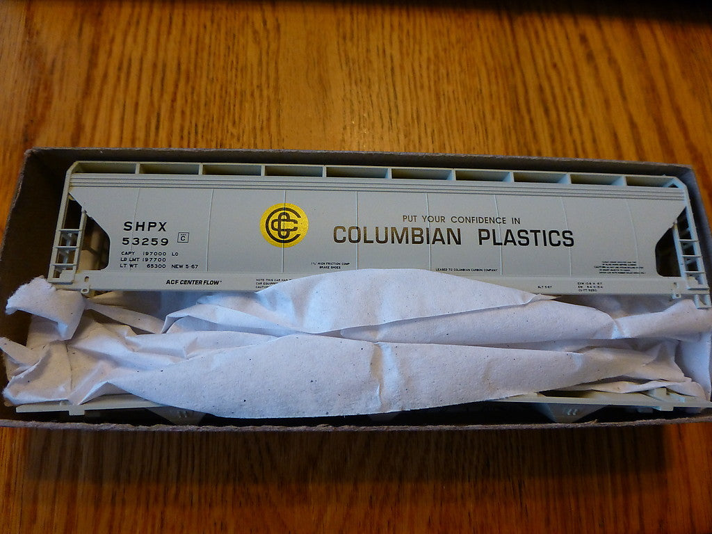 Accurail New in Box 8033 (3 Pack) ACF 3-Bay Cov. Hop Ltd Run (3 Different roads) Columbian Plastics rd #53259, Central Farmers Fertilizer rd #62538, & Southern Clay Products rd #47487 In Kit Form Assembly required HO Scale / 1:87 Scale We Combine Shipping: Thank you for shopping with TJ Model Trains, we will combine your multiple purchases. Please wait to make payment until you receive a combined invoice from us. ( Just commit to buy on all items you are needing, and then wait for the combined shipping invoice, please do not pay for items separately ) Invoices are sent once a day. We do NOT demand immediate payment as some sellers do, so you may receive multiple invoices (just pay from the invoice received after your last purchase) payment should be made within 5 days of initial purchase.