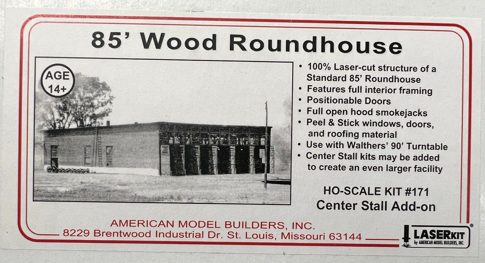 This kit includes matching laser-cut parts to add an interior stall (no side walls) to the 85' Roundhouse Kits #152-170, 172, or 173, each sold separately.