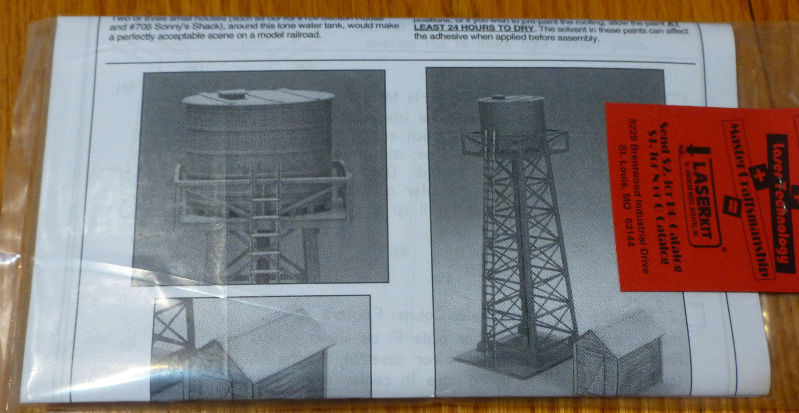 This is a new in box kit - American Model Builders HO #720 Wood Water Supply Tank w/Pump House -- Tank Measures 2.5 x 2 x 6" Pump House Measures 1.75 x 1 x 1.5" The LaserKit Wood Water Tank is a versatile structure that'll be at home supplying water to any small town or business. Kit includes laser-cut tower, tank, platform, ladder, separate pump house, white metal column footers and plastic tubing. Craftsman Model Kit - Assembly Required