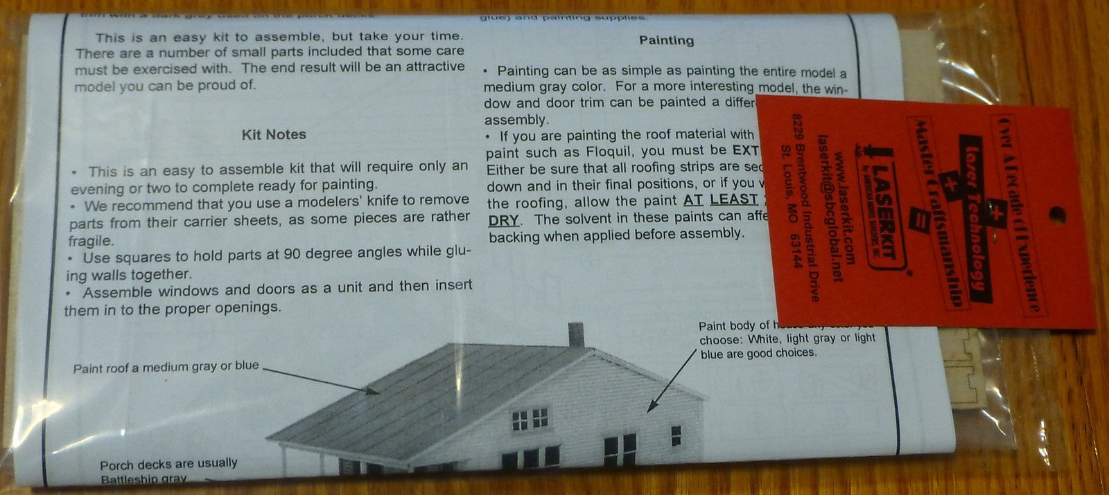 This structure makes a great home in any setting from the 1920s to the present. The frame bungalow includes covered front and rear porches, outside cellar doors, laser-cut lattice wok under the front pro ch and self-adhesive, laser-cut roofing.