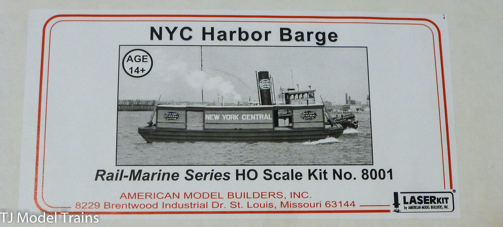 American Model Builders, Inc / HO Scale / Harbor Barge #1 -- New York Central - Wood Kit Measures: 14 x 4 x 3" 35.6 x 10.2 x 7.6cm Product Information Based on the freight barges used by the NYC for cross-harbor traffic around the New York City area, these barges were used to haul cargo between freight cars and dockside warehouses. Laser-cut wood construction with cast-resin and metal detail parts. Features prototypical sheer and camber as well as positionable freight doors and window shutters.