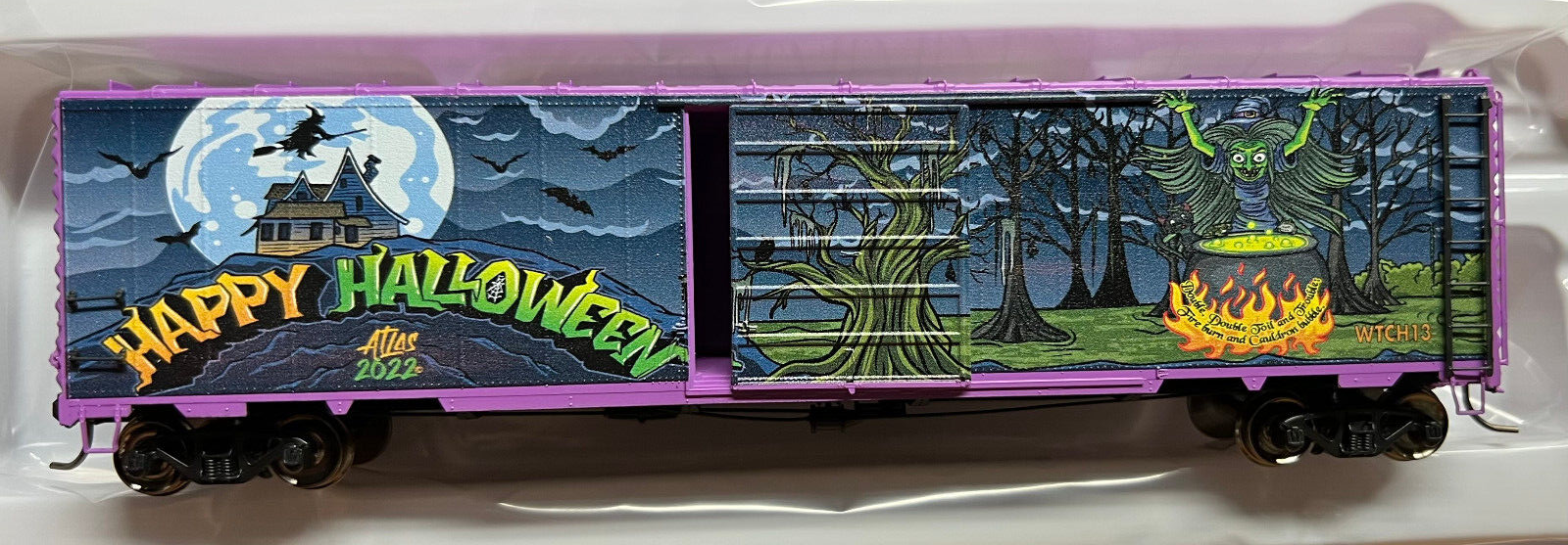 Postwar 50' Single-Door Boxcar - Ready to Run - Master(R) -- Halloween WTCH #2022 (Halloween Witch Graphics)