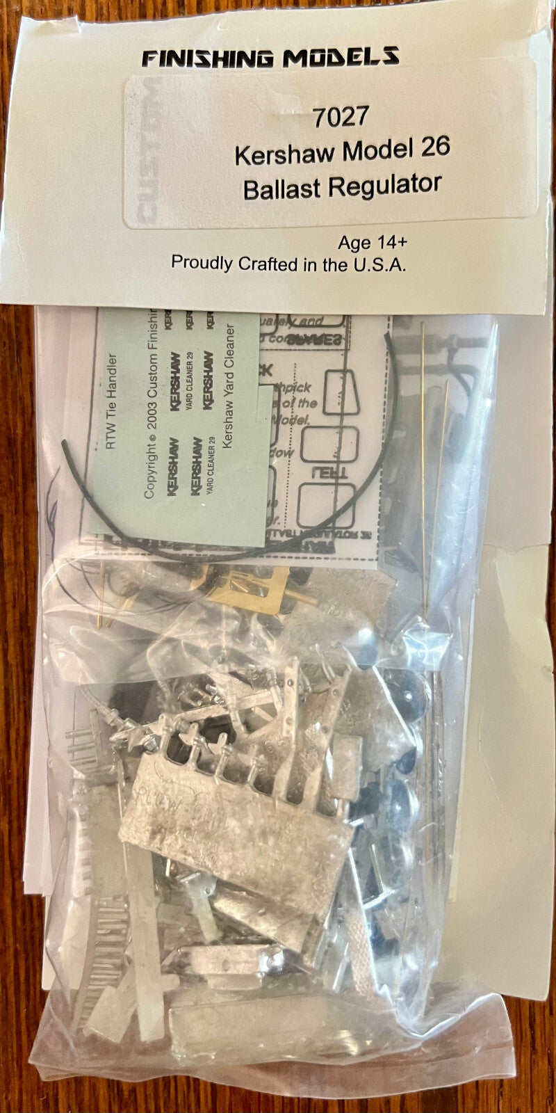 One of the most versatile machines in railroading, the Kershaw Model 26 Ballast Regulator can be found on the maintenance roster of every Class 1 US and Canadian railroad. One the prototype, these machines spread and shape the ballast between and alongside the rails, preparing it for the tampers. This HO Scale model builds into a detailed replica and with careful assembly, many of the parts are positionable. The side wing plows can be raised and lowered by cable and drum like the prototype. The front transfer plow blade swings, and can be raised and lowered, as can the sweeping machinery at the rear. The model includes a full cab interior, plus decals, window glazing and etched brass windshield wipers. The kit features over 100 metal parts and includes complete assembly instructions.