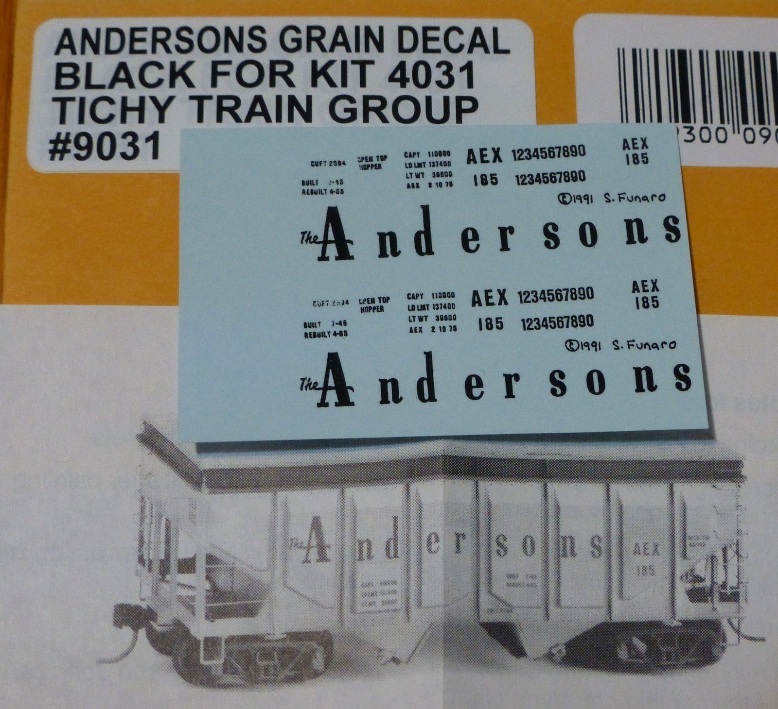 This is a new in package Tichy Train Group #9031 Decals For USRA 36' 2-Bay Panel Side Rebuilt Covered Grain Hopper -- Anderson Co. (black) HO Scale ( 1:87 Scale ) We Combine Shipping: Thank you for shopping with TJ Model Trains, we will combine your multiple purchases. Please wait to make payment until you receive a combined invoice from us. ( Just commit to buy on all items you are needing, and then wait for the combined shipping invoice, please do not pay for items separately ) Invoices are sent once a day. We do NOT demand immediate payment as some sellers do, so you may receive multiple invoices (just pay from the invoice received after your last purchase) payment should be made within 5 days of initial purchase. Thank you for shopping T J Model Trains!! Lord Bless You..!! T J Model Trains