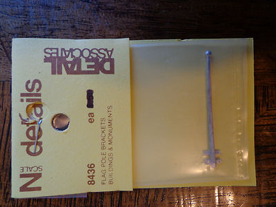 This is a new in package Detail Associates N Scale #8436 Flagpole w/Mounting Bracket