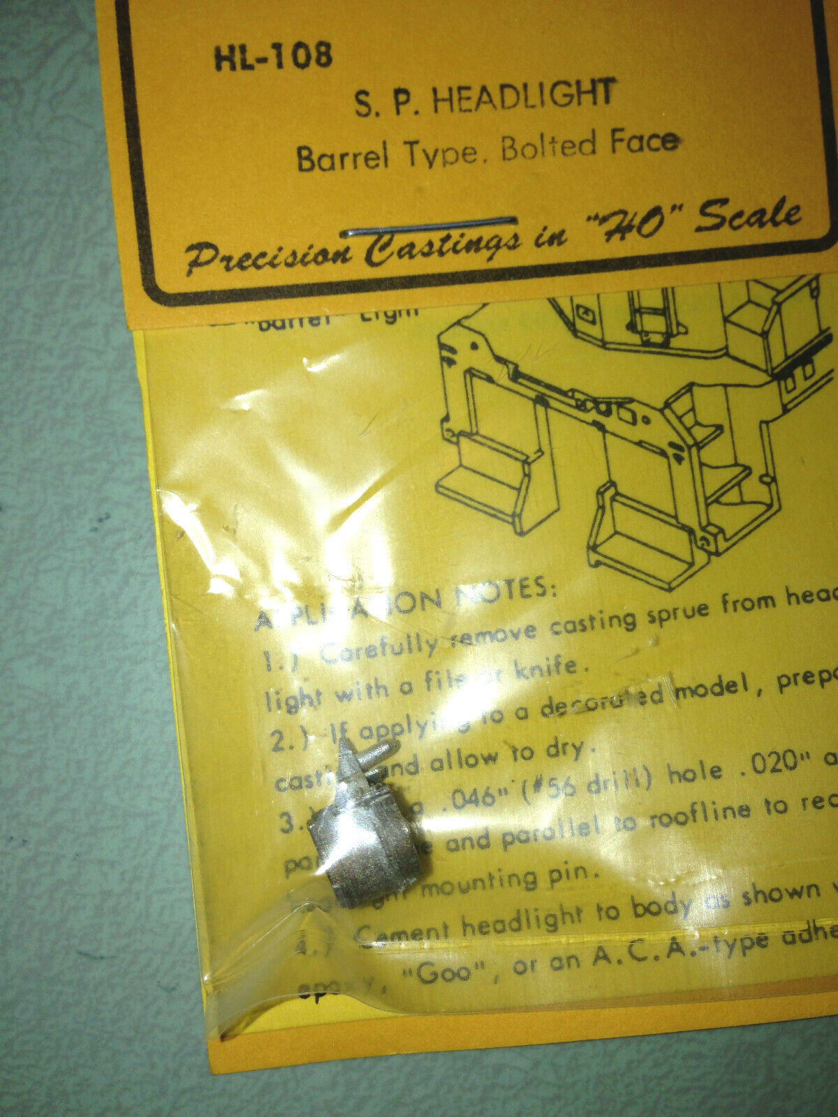 This is a new in package Details West HO Scale #108 SP Barrel Type Headlight -- Bolted Face We will combine with multiple items. Please wait for the combined shipping invoice. (Invoices are send every 24-48 hours) Thank You for shopping at T J Model Trains Lord Bless You... Teresa & Joel Prantle TJ Model Trains |