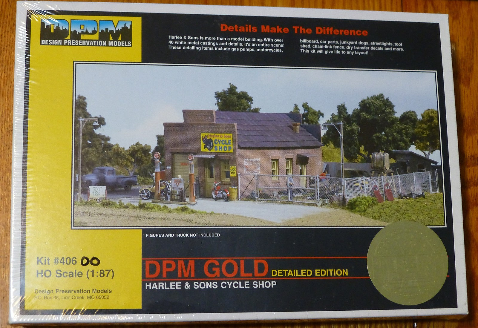 This is a new in package DPM Design Preservation Models (HO Scale) 1:87 Scale #40600 DPM Landmark Structures(R) Gold Kits -- Harlee & Sons Cycle Shop - Kit 6-7/8 x 11-3/4" 17.4 x 27.9cm