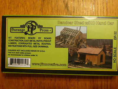 This is a new in box Durango Press HO #32 HO Handcar Shed w/Car -- 2 x 3" 5 x 7.7cm