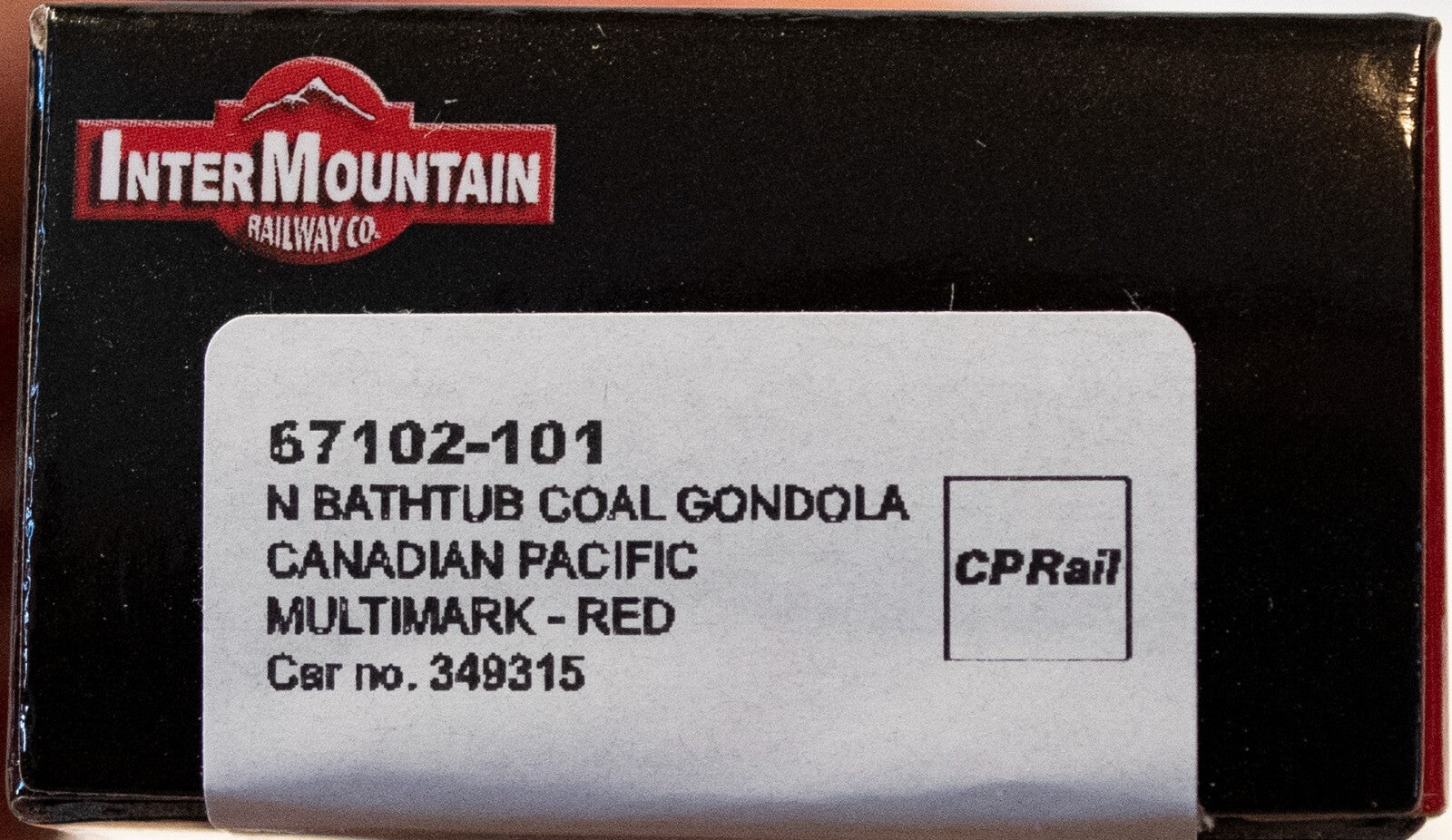 | New InterMountain Co. Product #67102-101 Bathtub Coal Gondola - Ready to Run -- Canadian Pacific (red, black, white, Multimark Logo)We Combine Shipping: Thank you for shopping with TJ Model Trains, we will combine your multiple purchases. Please wait to make payment until you receive a combined invoice from us. (Just commit to buy on all items you are needing, and then wait for the combined shipping invoice, please do not pay for items separately) Invoices are sent once a day. We do NOT demand immediate payment as some sellers do, so you may receive multiple invoices (just pay from the invoice received after your last purchase) payment should be made within 5 days of initial purchase.