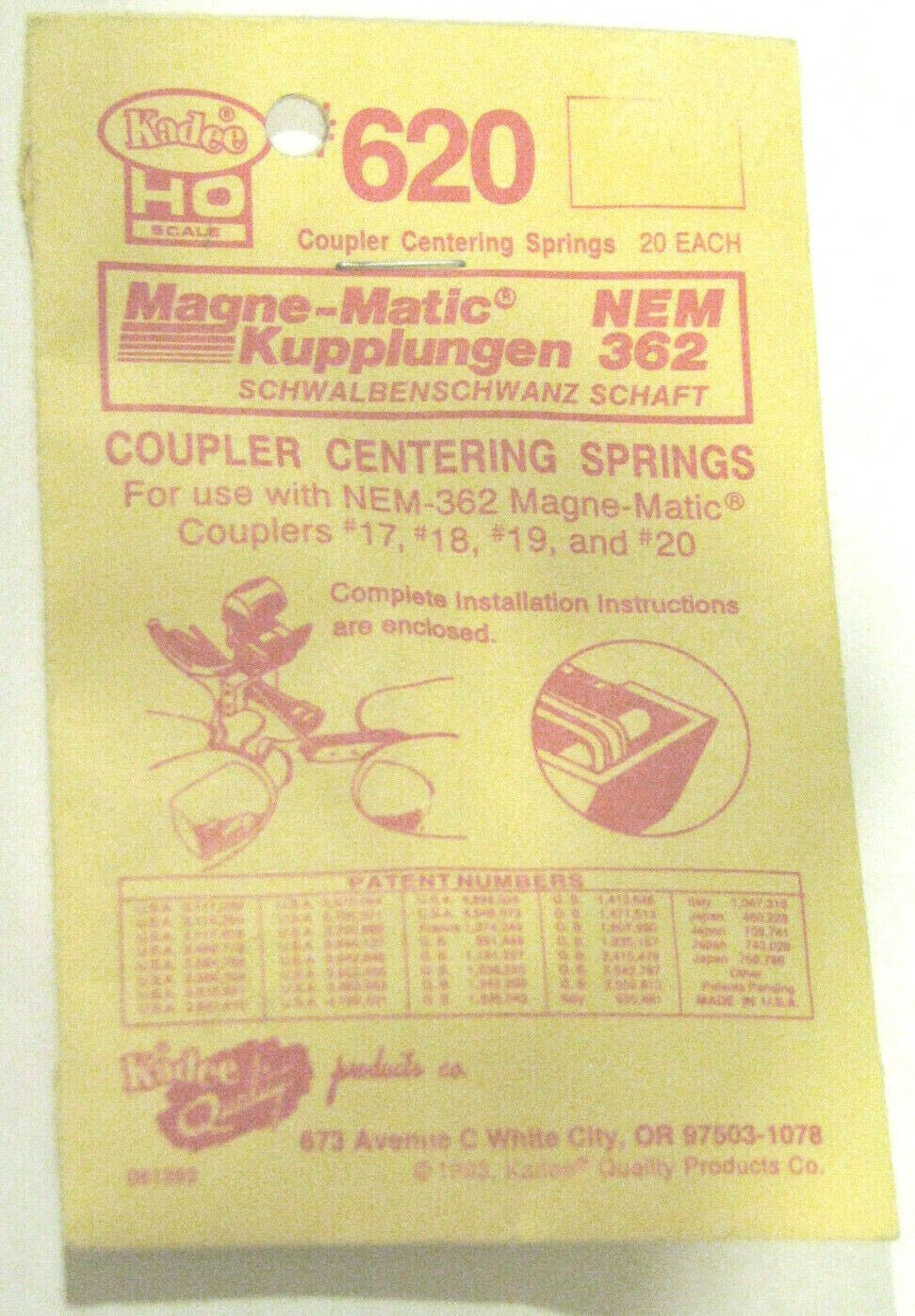 Kadee HO #620 Centering Springs (20) for Couplers (1:87th Scale)