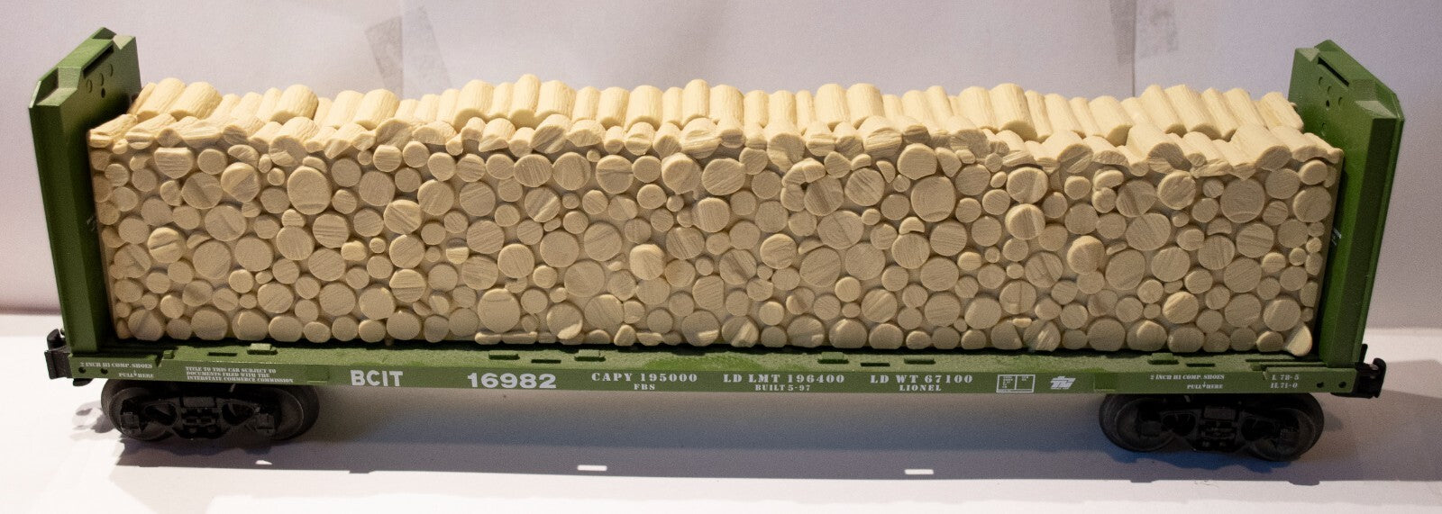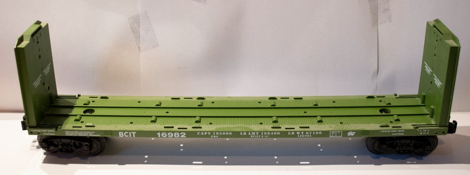 Lionel O Scale #6-16982 BC Bulkhead Flatcar w/Simulated Cut Wood Load