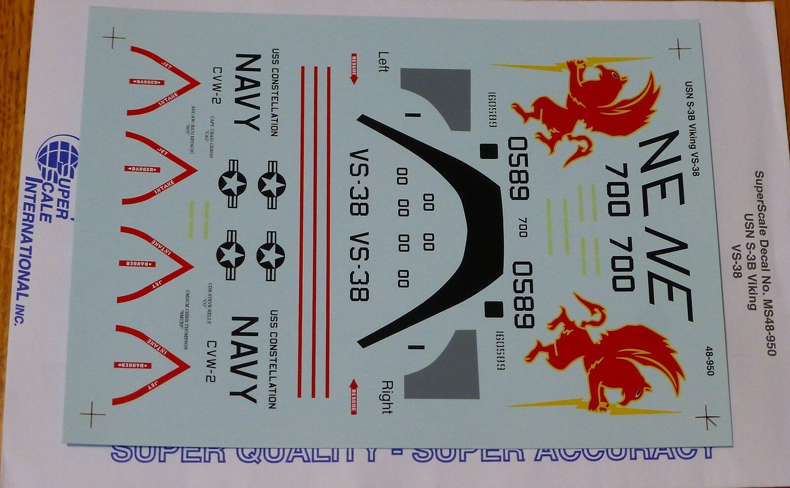 Microscale Decal set O Scale / 1/48 Scale #MS48-950 USN S-3B Viking VS-38