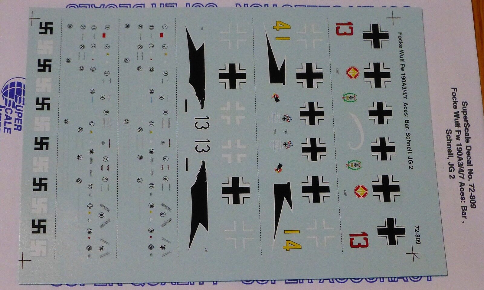 Microscale Decal set 1/72 Scale #72-809 Focke Wulf Fw 190A3/4/7 Aces: Bar, Schnell, JG 2