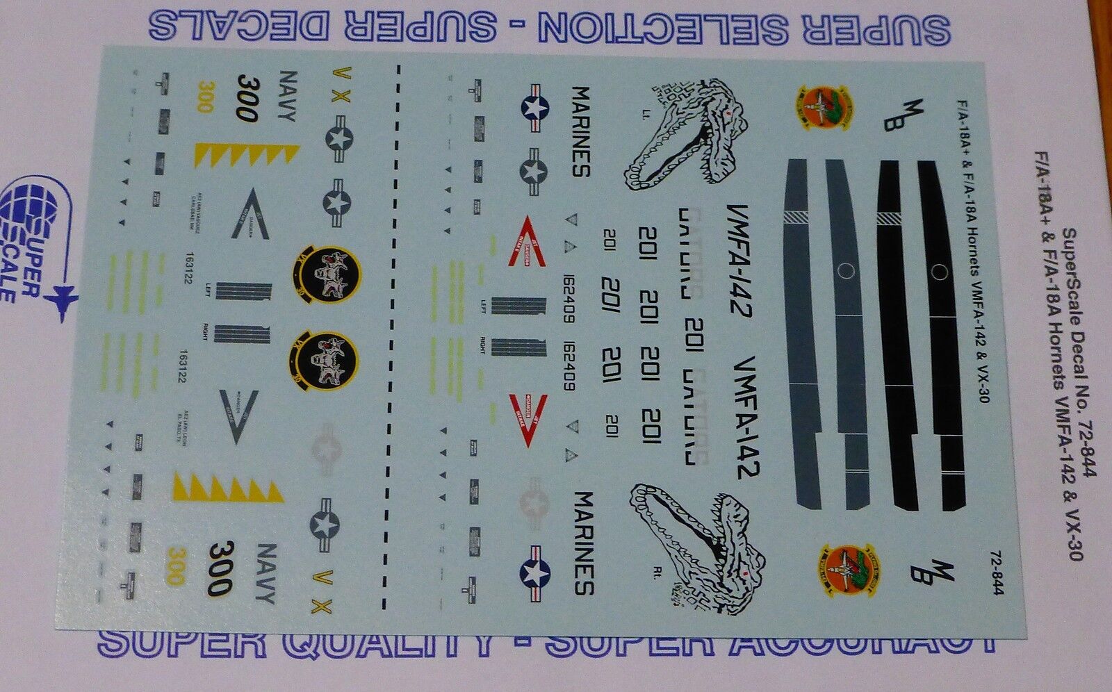 Microscale Decal set 1/72 Scale #72-844 F/A-18A+ & F/A-18A Hornets, VMF A -142 & VX-30