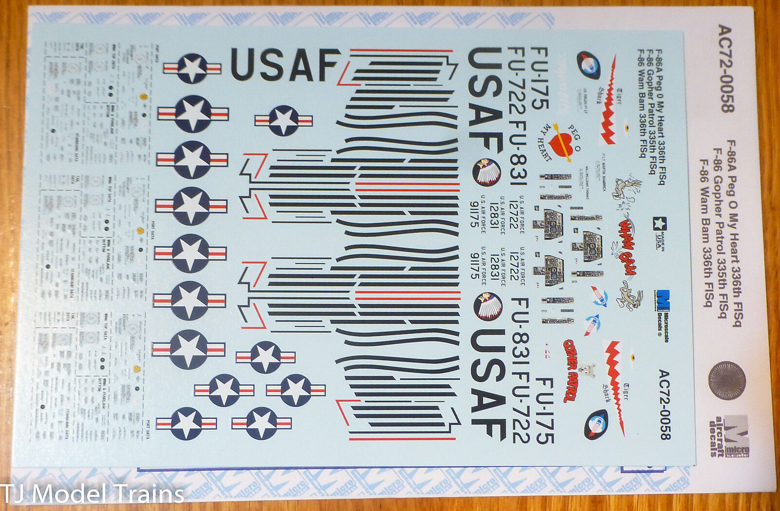 Microscale Decal set 1/72 Scale / F-86A Peg O My Heart 336th FISq F-86 Gopher Patro 335th FISq F-86 Wam Bam 336th FISq