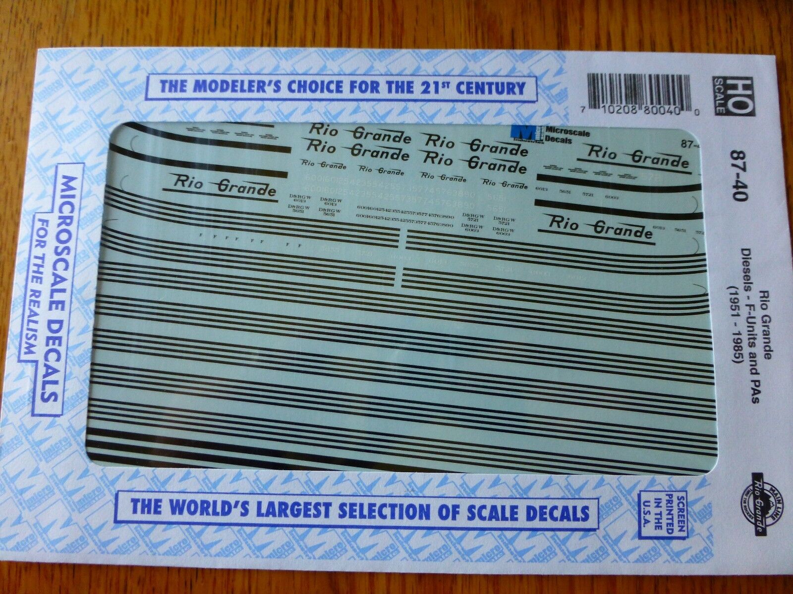 Microscale Decal HO #87-40 Rio Grande Cab Diesels - F-Units and Pas (1951-1985)