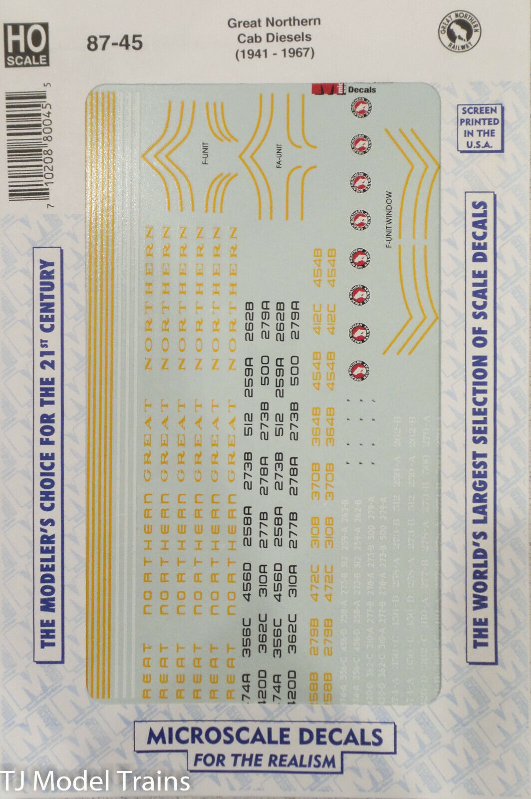 Microscale Decal HO #87-45 Great Northern Diesels - Cab Units Diesel - Cabs - G