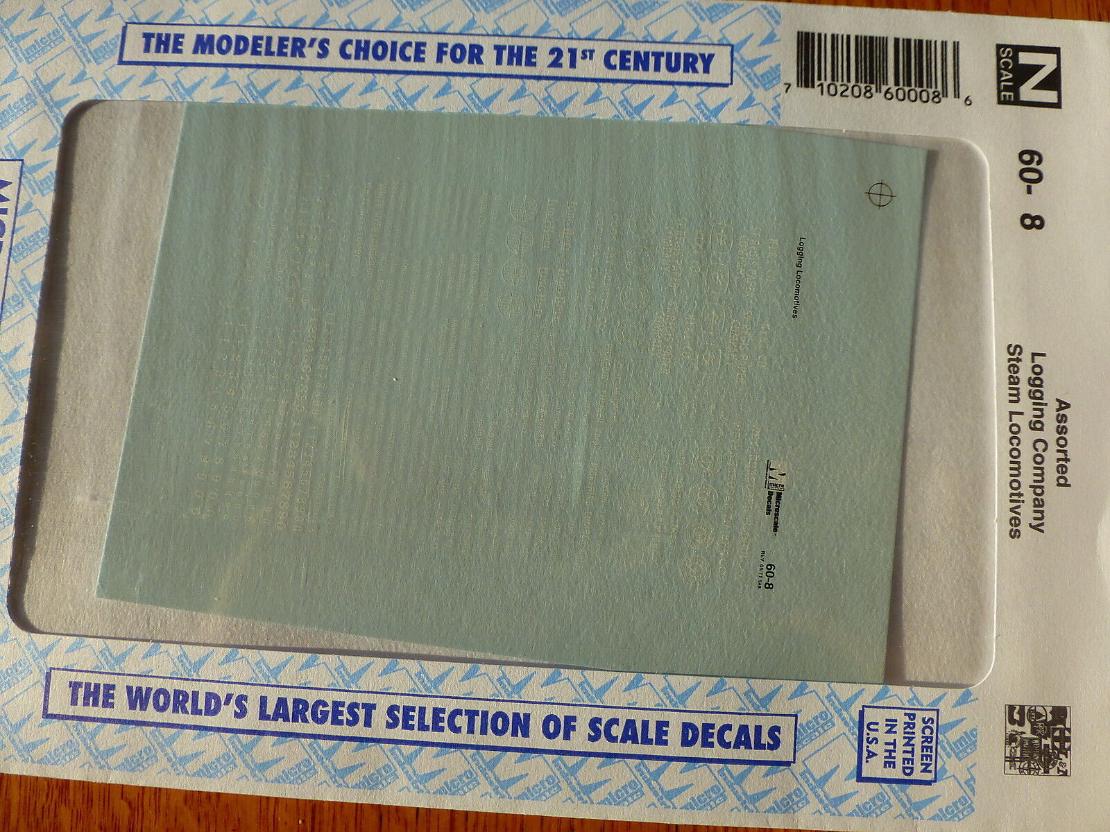Microscale Decal N #60-08 Logging Steam Locomotives - Assorted Companies (Decals