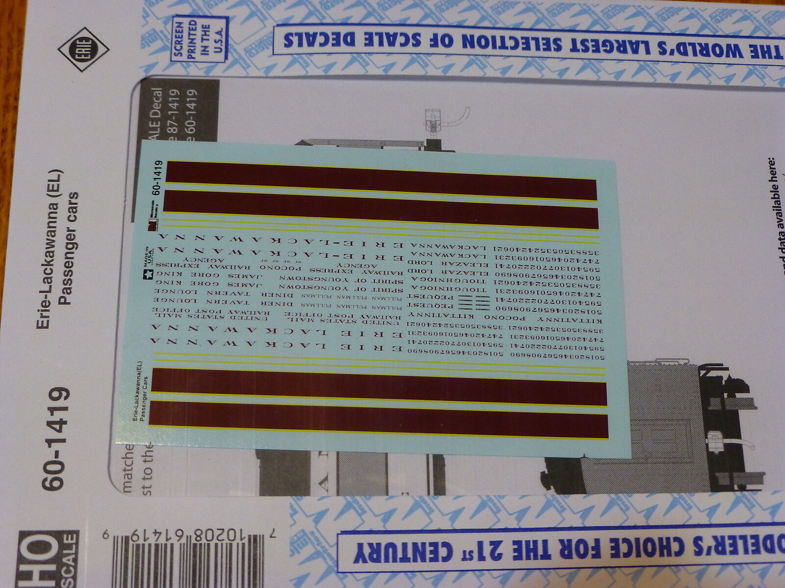 Microscale decal (N Scale) #60-1419 Erie-Lackawanna (EL) Passenger Cars