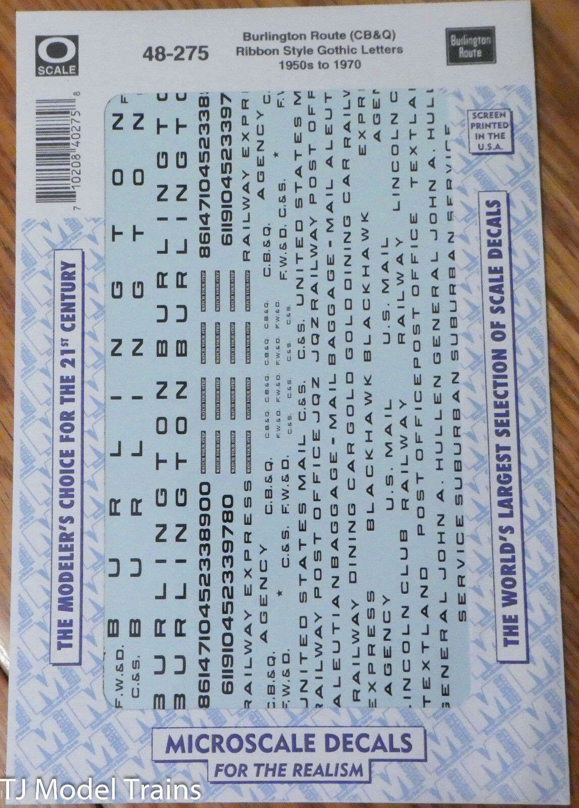 Microscale Decal O #48-275 Burlington Route(CB&Q)Ribbon Style Gothic(1950s-1970)