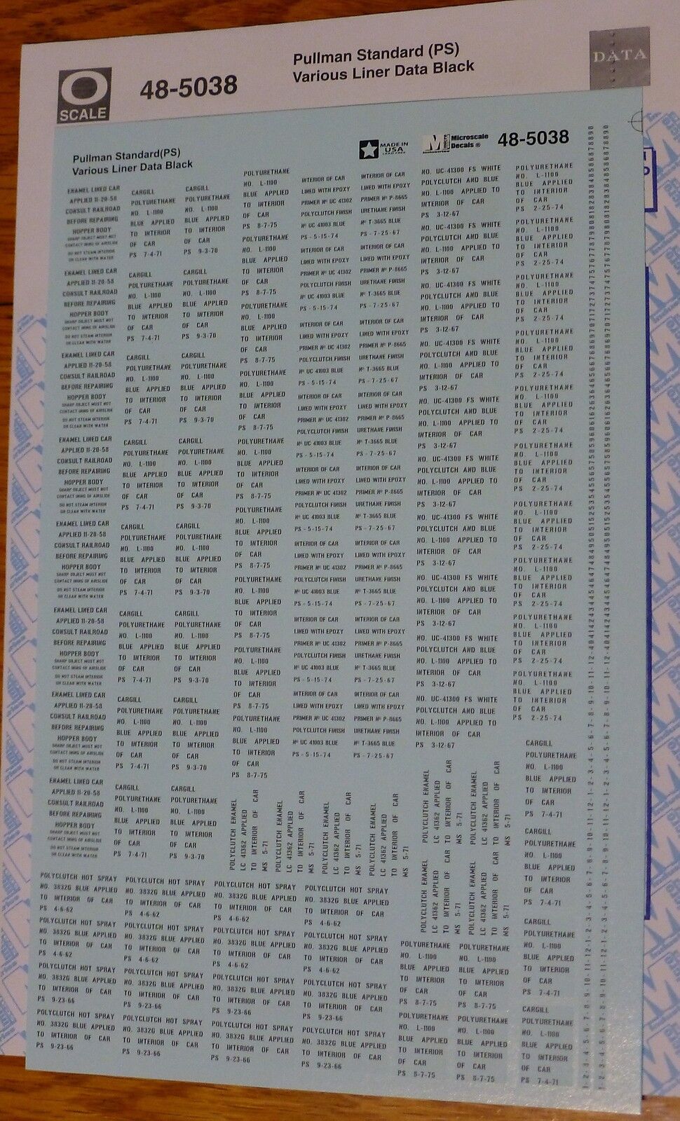 This is a new in package Microscale Decals / #48-5038 Pullman Standard (Pullman) Various Liner Data Black