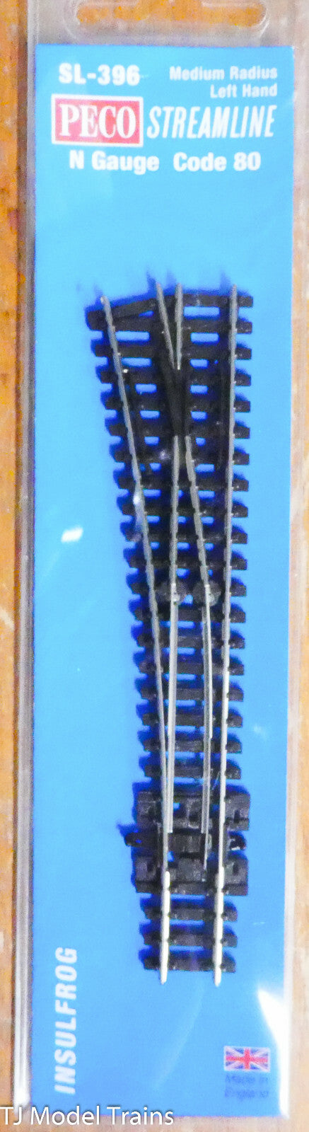 Peco #SL-396 Code 80 Medium Radius #6 Turnout - Streamline -- Left Hand, Insulfr