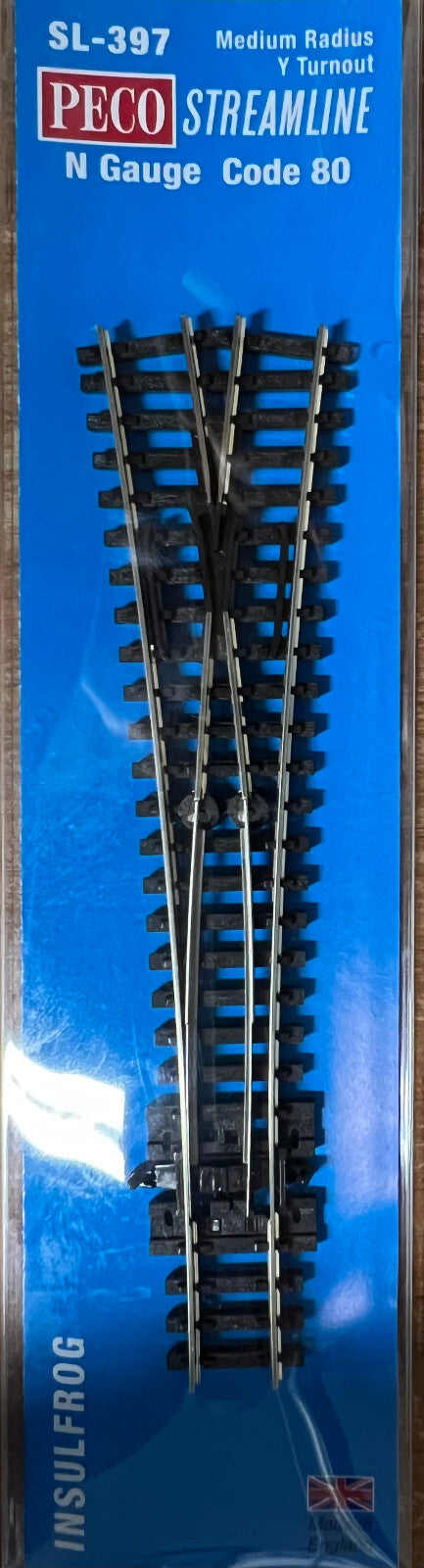 Peco #SL-397 Code 80 Medium Radius Y Turnout - Streamline -- Insulfrog