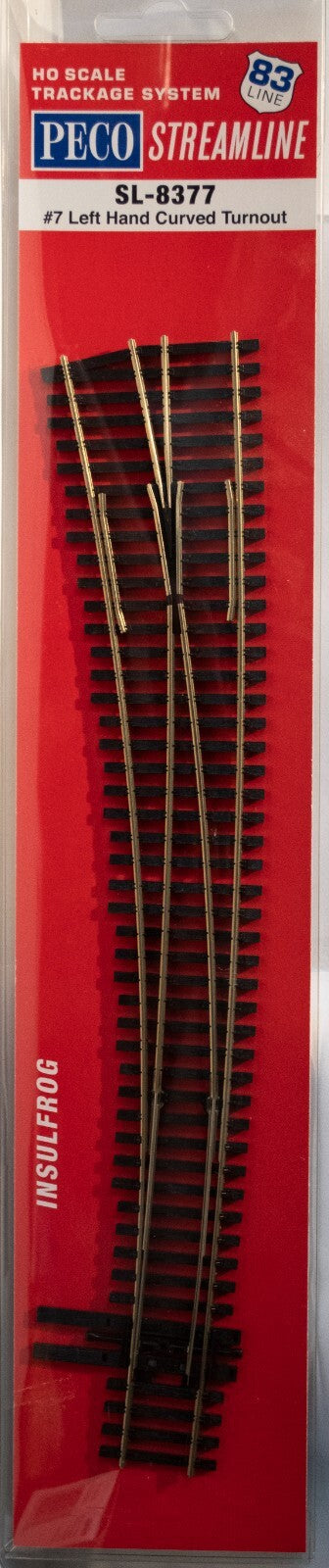 Peco #SL-8377 North American-Style Code 83 #7 Curved Turnout - Streamline -- Lef