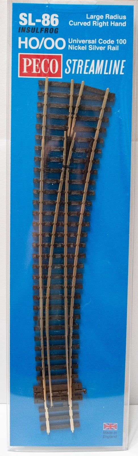 Peco #SL-86 Code 100 Curved Double Radius Turnout - Streamline -- Right Hand, In
