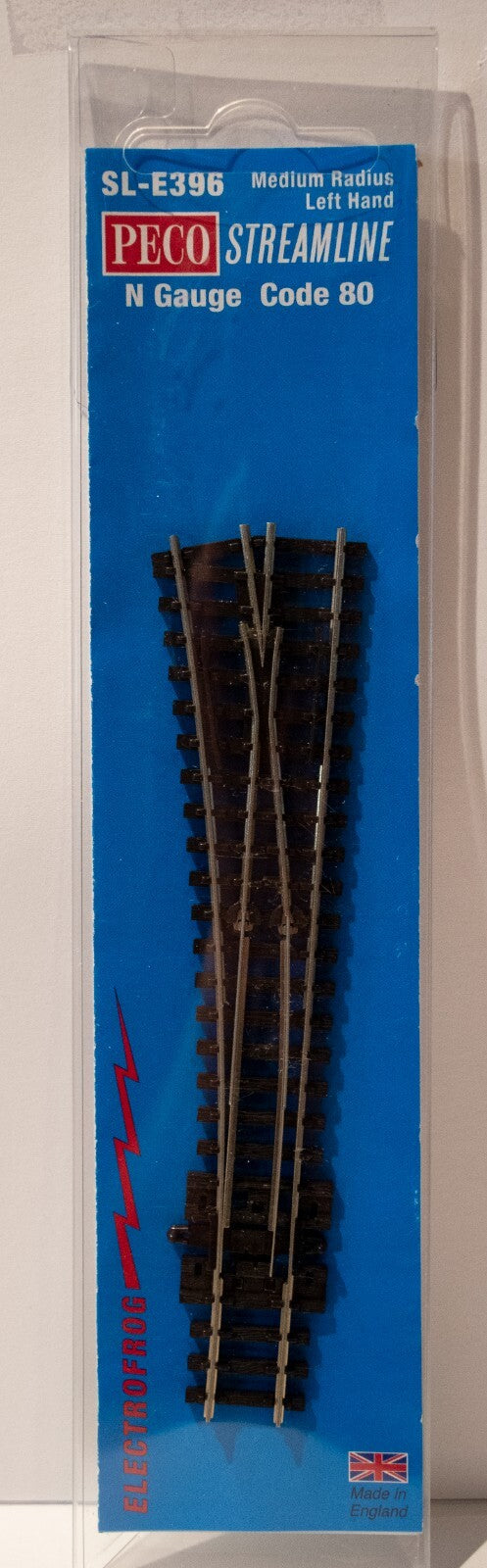 Peco #SL-E396 Code 80 Medium Radius #6 Turnout - Streamline -- Left Hand Electro