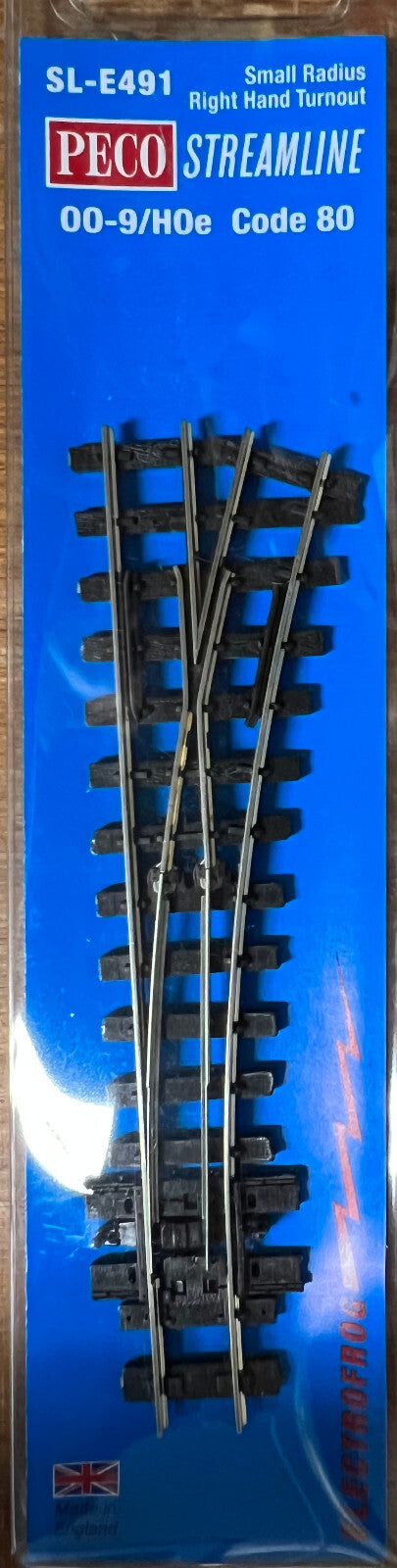 Peco Streamline #SL-E491 Code 80 , Small Radius Right Hand Turnout 00-9/HOe