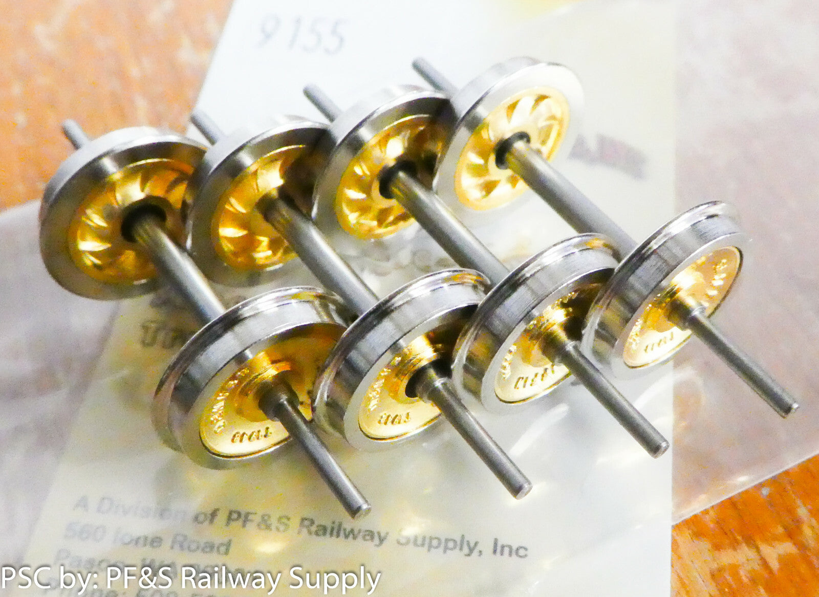 Precision Scale O #9155 Wheelset, 26" Griffen Denver w/Extended Axle for D&RGW