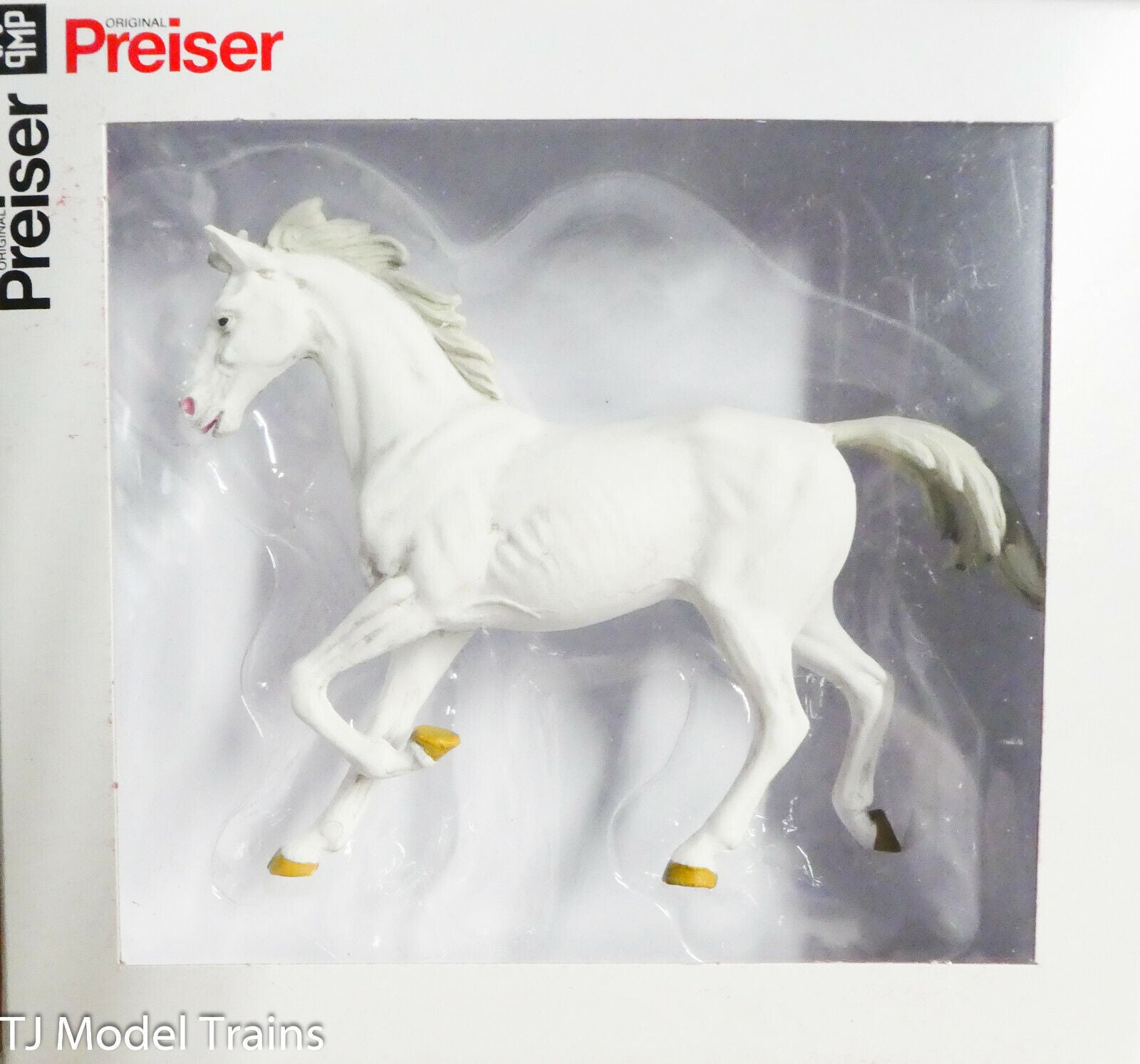 Preiser #47022W White Trotting Horse (1/25th Scale) Painted / Plastic