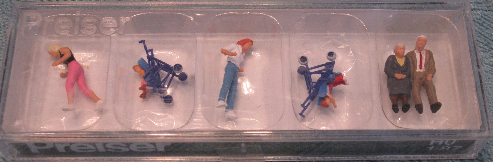 This is a new box of Preiser HO #590- 10493 Pedestrians -- Mothers w/Children In Strollers & Grandparents
