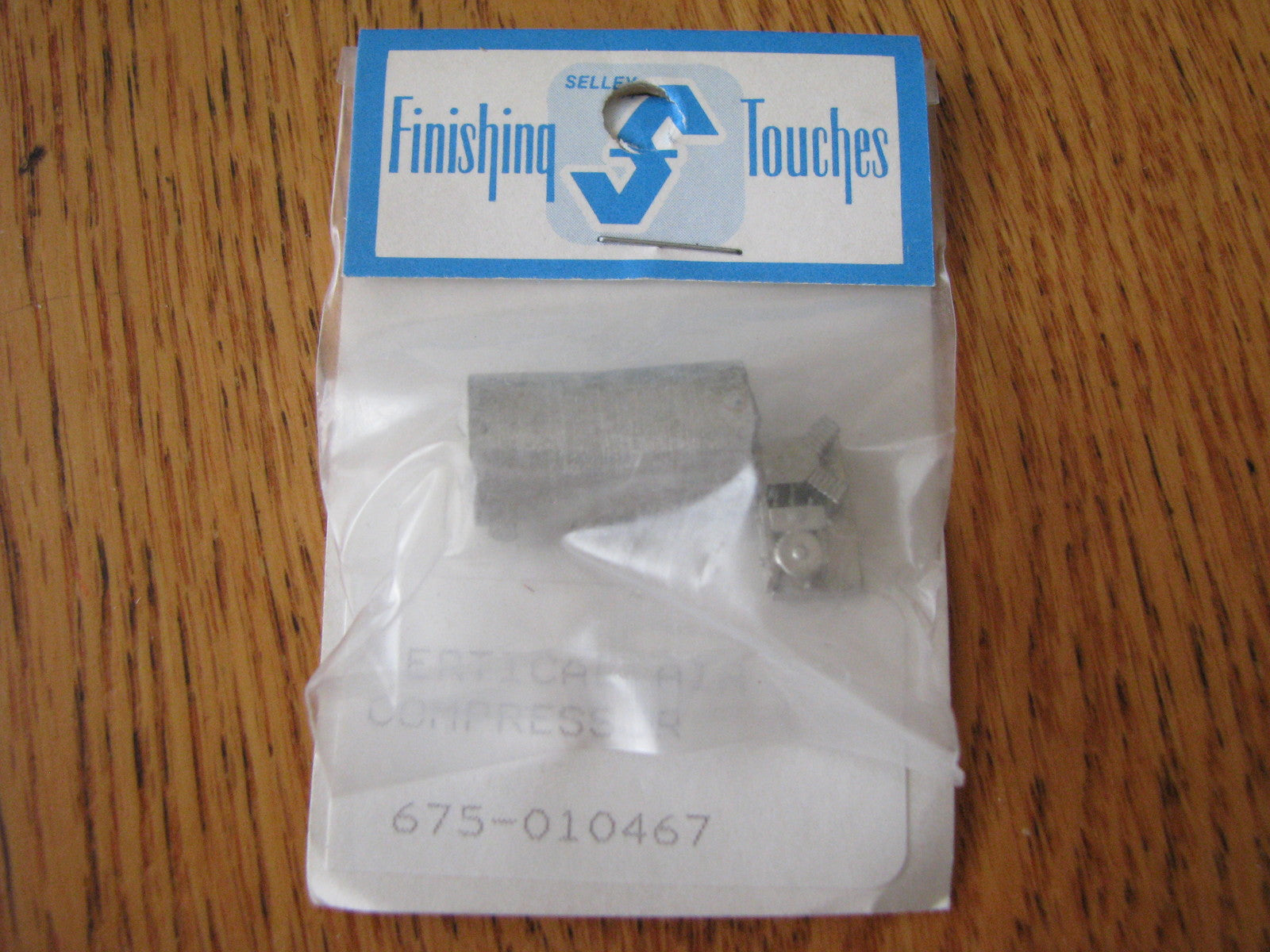 This is New in package Selley O Scale # 10467 Vertical Air Compressor For pictures please check them out on this PDF file: O Selley Catalog Sheets (PDF file 1.3 meg)
