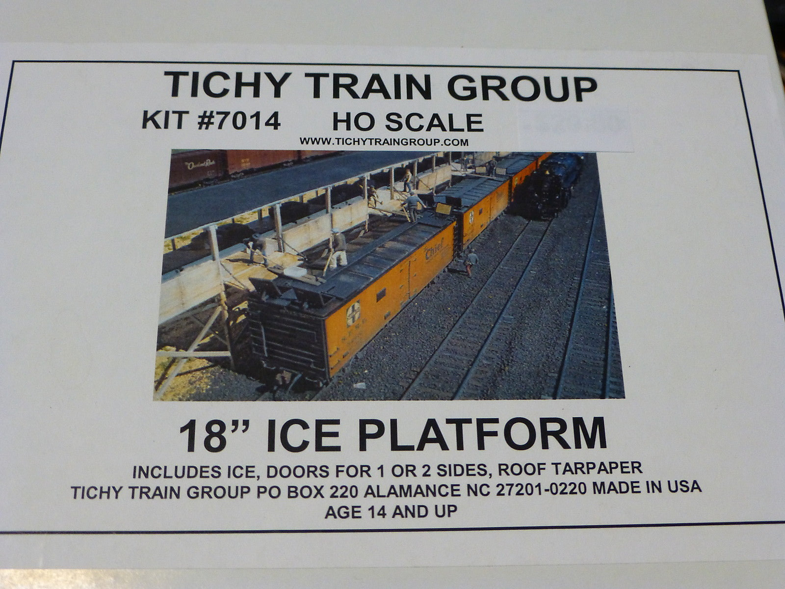 Tichy Train Group / Icing Platform/Dock -- Kit - 18" 45.7cm Long Based on the standard Pacific Fruit Express design, platforms of this type were in service from the late 1800s to the early 1970s. The kit includes three 6" 15.2cm long modules, but several kits (sold separately) can be combined to make a longer platform if desired. The kit also includes extra drop doors to model a two-track version. All parts are molded in gray styrene for ease of assembly. Plastic ice blocks and tarpaper for the roof are also included.