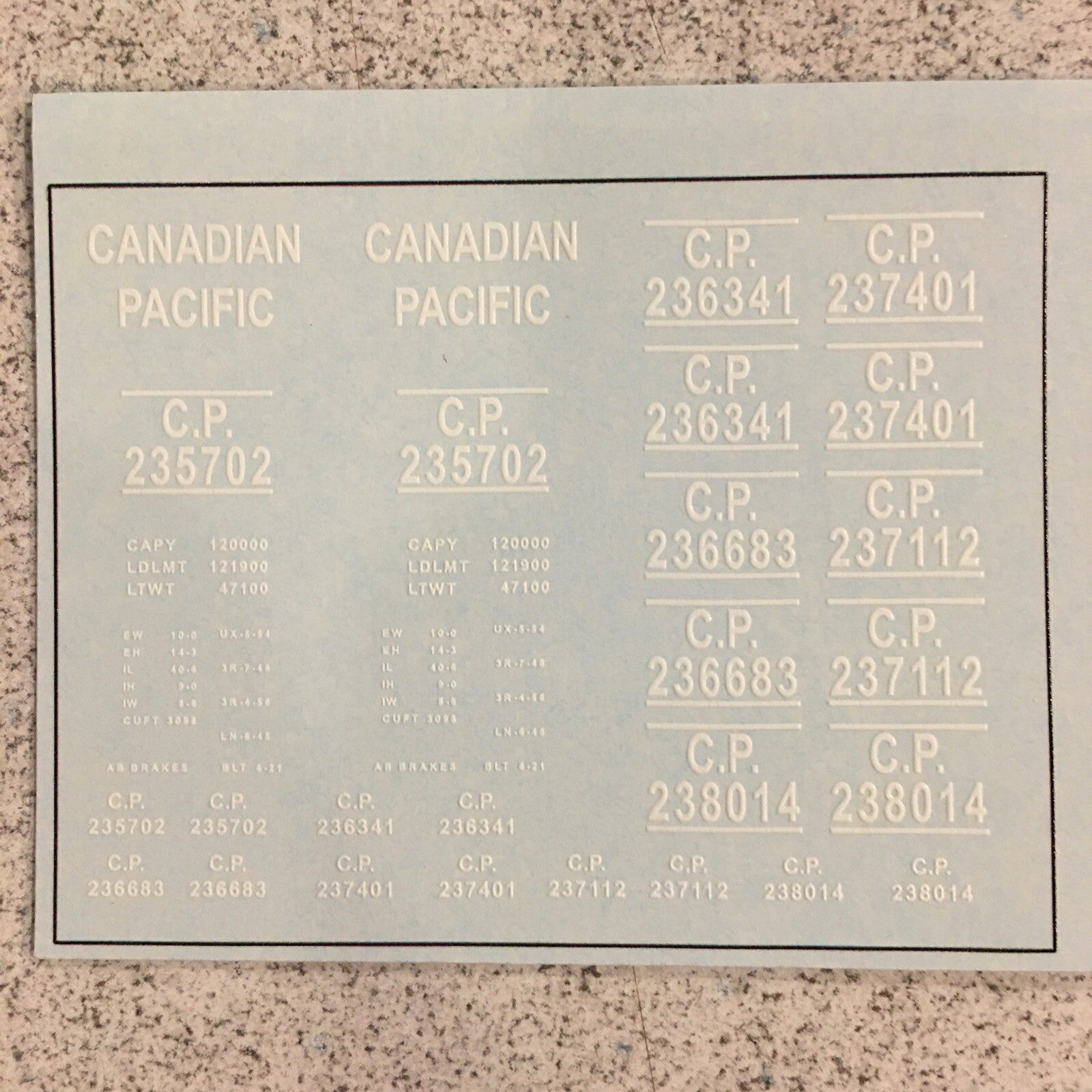Tichy Train Group #9034 CP SS Boxcar Decal White for: Kit #4034
