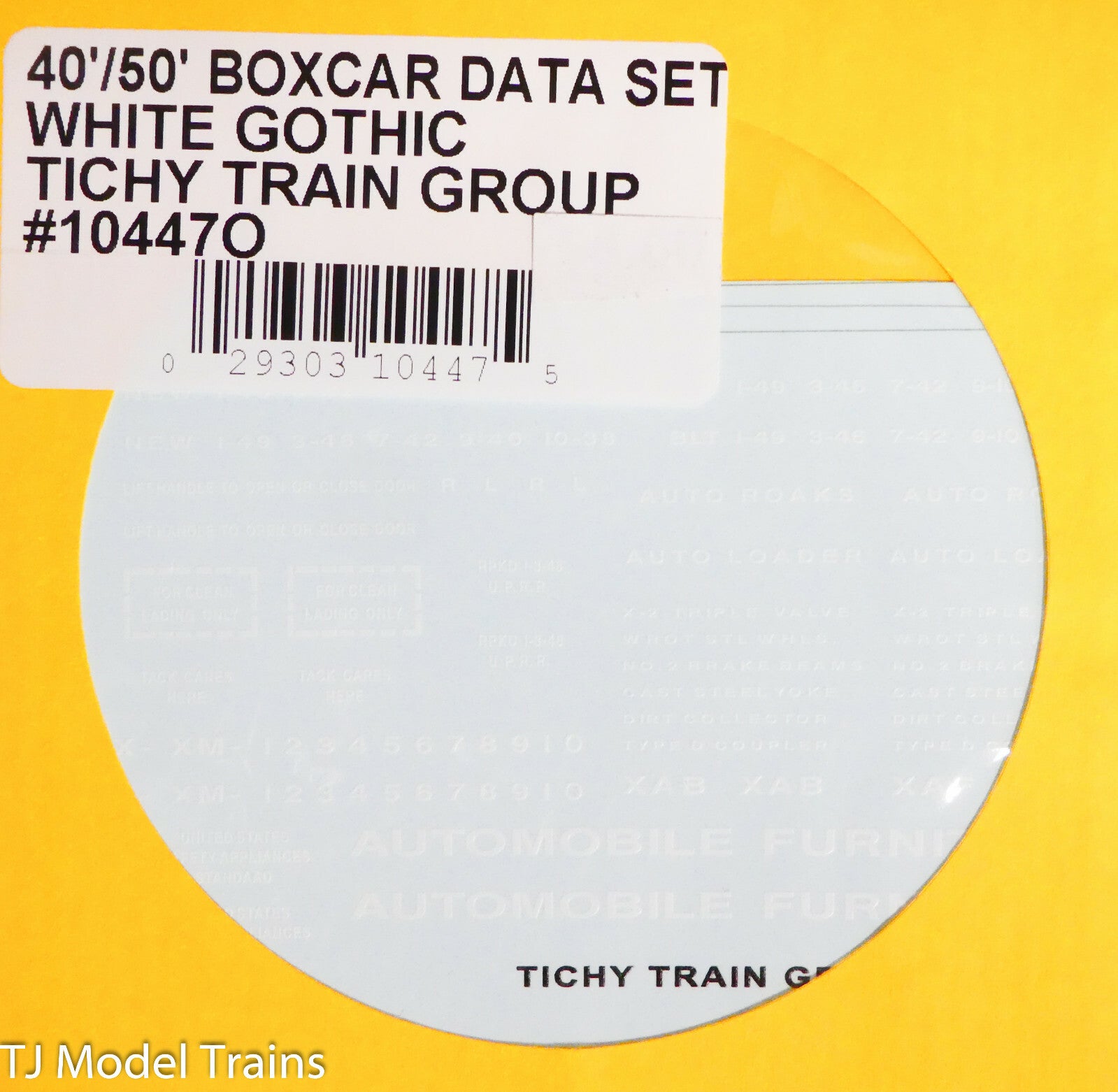 Tichy Train Group O #10447O (40'/50' Boxcar Data Set White Gothic) (Decal)