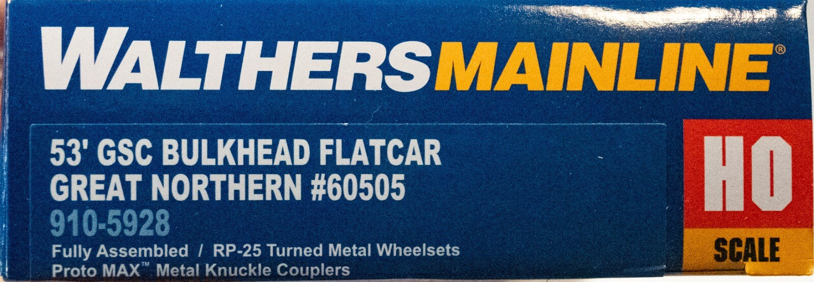 Walthers HO #910-5928 53' GSC Bulkhead Flatcar - Ready to Run -- Great Northern
