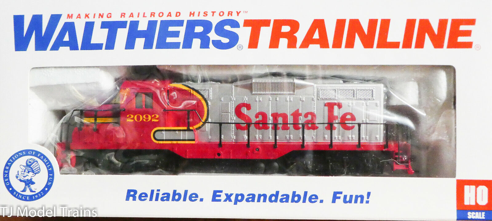 This is a new in box Walthers TrainLine HO #931-113 HO Scale / 1/87 Scale EMD GP9M - Standard DC -- Santa Fe #2092 (Warbonnet, red, silver)Product InformationThis WalthersTrainline EMD GP9M diesel locomotive will be a real workhorse on your HO Scale model railroad, and is perfect for expanding or upgrading any train set too! Based on locos introduced in 1954 and still going strong today, the GP9M is available decorated in a variety of colorful schemes and are fully assembled, ready for service on your railroad.