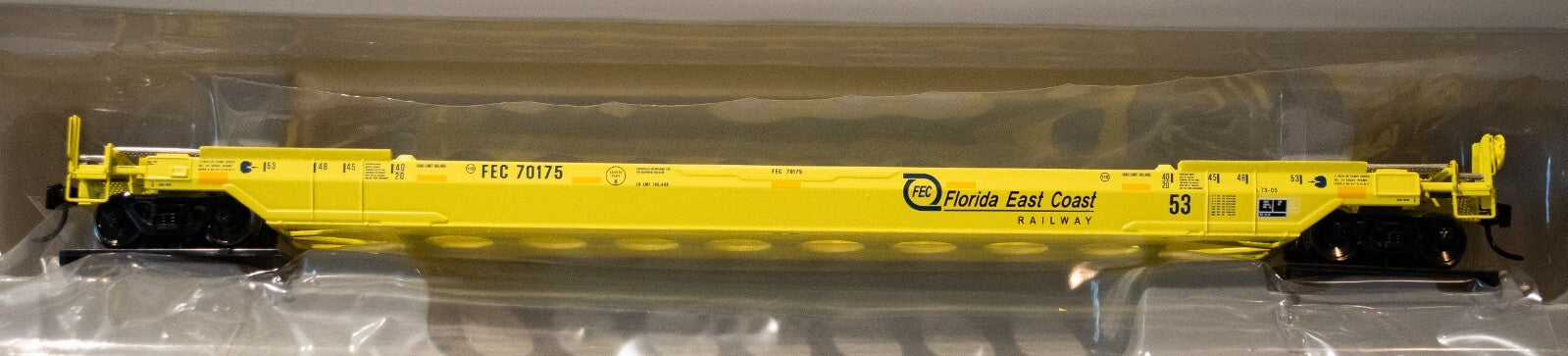 Gunderson Rebuilt All-Purpose 53' Well Car - Ready to Run -- Florida East Coast #70175 (yellow, Hurricane Logo)