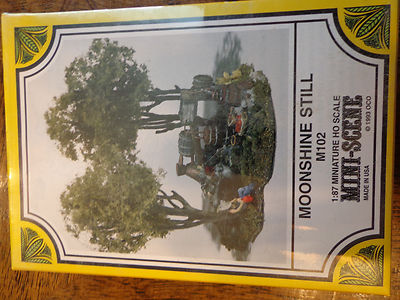 This is a new in package Woodland Scenics HO #102 - Moonshine Still (NOTE: Unpainted kit in kit form)